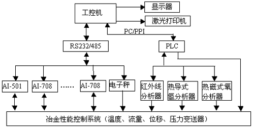 引言:高爐冶煉系統是一個復雜的控制系統,對其進行解剖代價高昂。該系統模擬高爐冶煉過程檢測冶煉過程中溫度、壓力、流量、位移、失重等各參數的變化規律建立冶金性能測控系統大型實驗室,依據實驗結果對高爐冶煉過程提供指導性意見。系統采用集散控制結構,現場由廈門宇電的AI智能儀表實現溫度等的精確控制,由PLC來實現過程開關量、部分模擬量及定時計數等的過程控制,由工控機實現集中管理。AI智能儀表先進的AIBUS+通訊協議,支持RS485通訊接口,配合EM-485B模塊構成了該系統的計算機通訊系統,通過RS-485串行通訊實現19個通道溫度、流量、壓力、位移的集中監控。