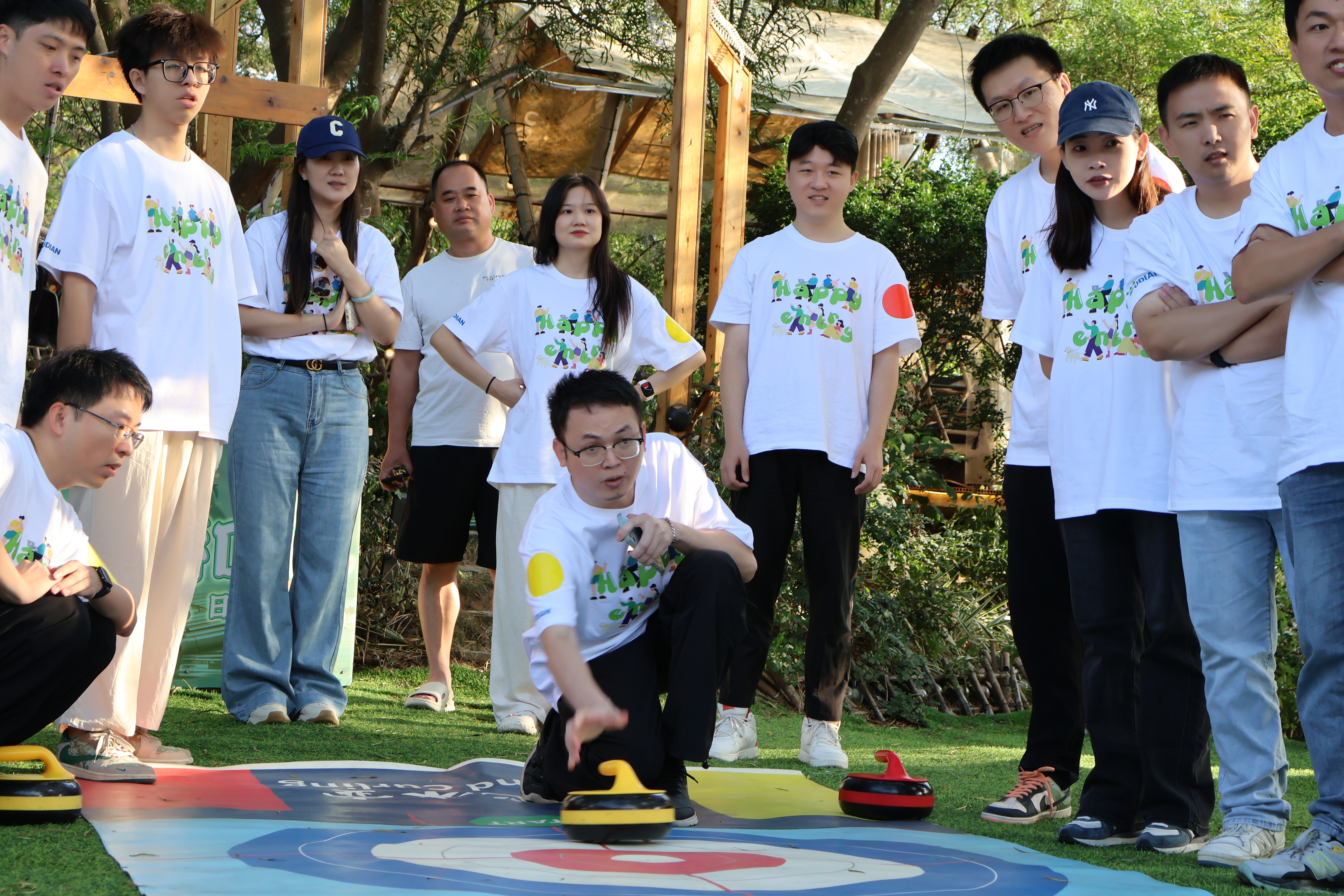作為活動的核心挑戰項目,旱地冰壺備受矚目。在教練的指導下,新同事們化身“戰略家”,從生疏到熟練,每一次精準的投擲、每一次成功的防守,都凝聚著團隊的智慧與默契。賽場上的吶喊與歡呼,是集體榮譽感最直接的體現。