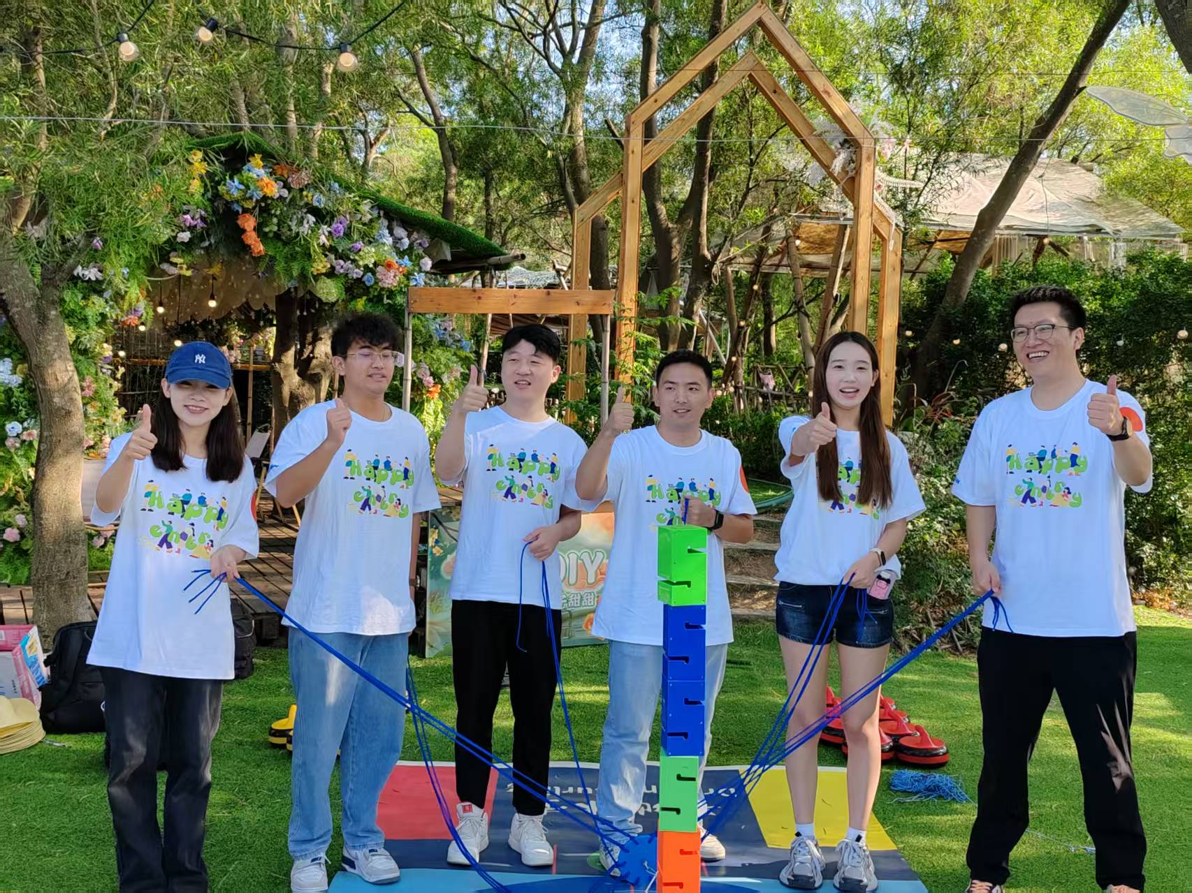 在合力筑塔環節,團隊成員需要通力協作,用繩索控制塔鉤,將一塊塊積木穩穩壘高。這不僅考驗著每個人的專注力,更需要團隊的默契配合。當積木塔在共同努力下拔地而起,那份成就感讓每個團隊成員的臉上都綻放出燦爛的笑容。