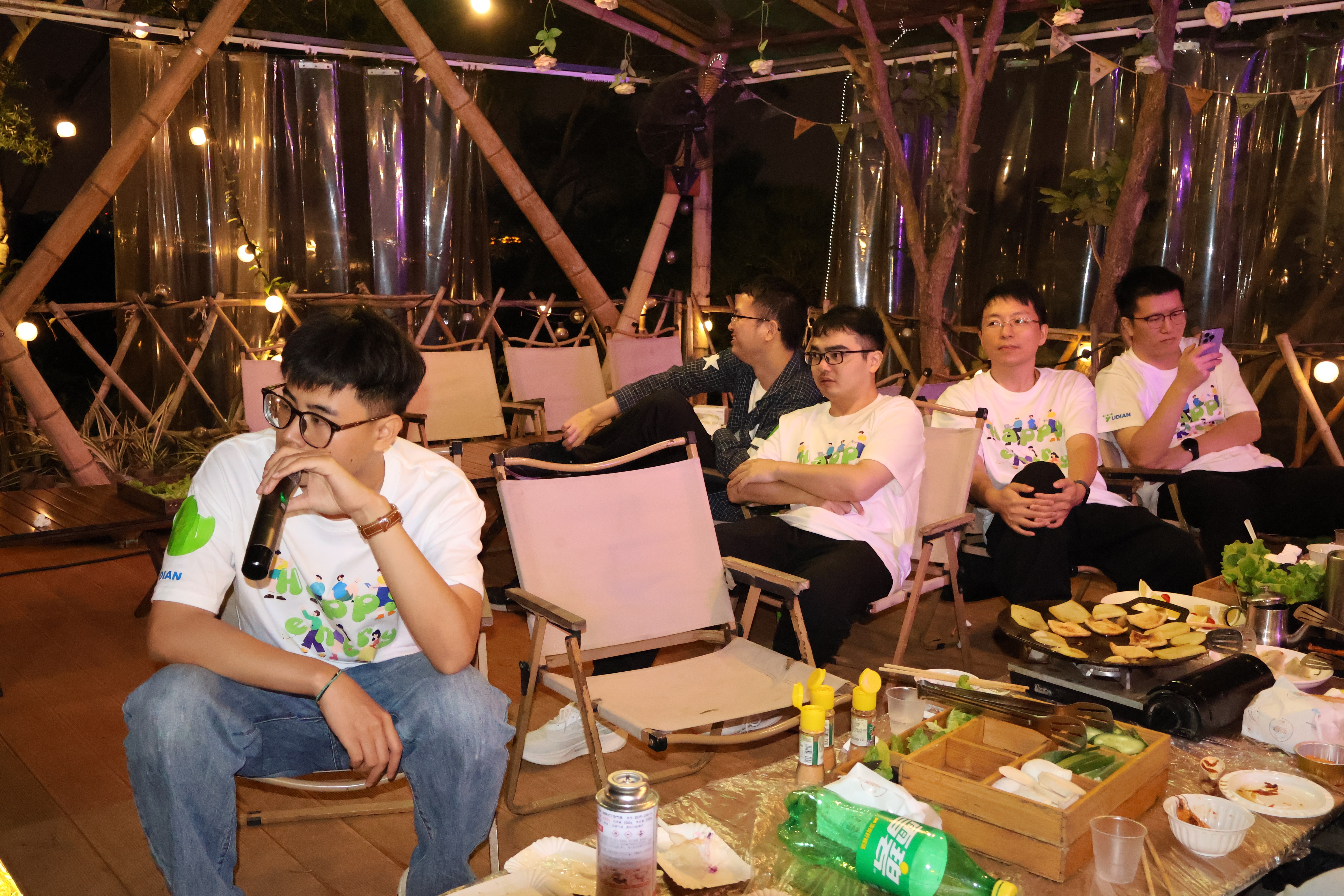 當夜幕降臨,星光點點,最令人期待的露營燒烤晚會正式開始。大家自己動手,分工協作,炊煙裊裊中彌漫著食物的香氣與歡聲笑語。新同事們舉杯暢飲,分享著入職以來的心得與感悟,也對在宇電的未來充滿了無限的憧憬。